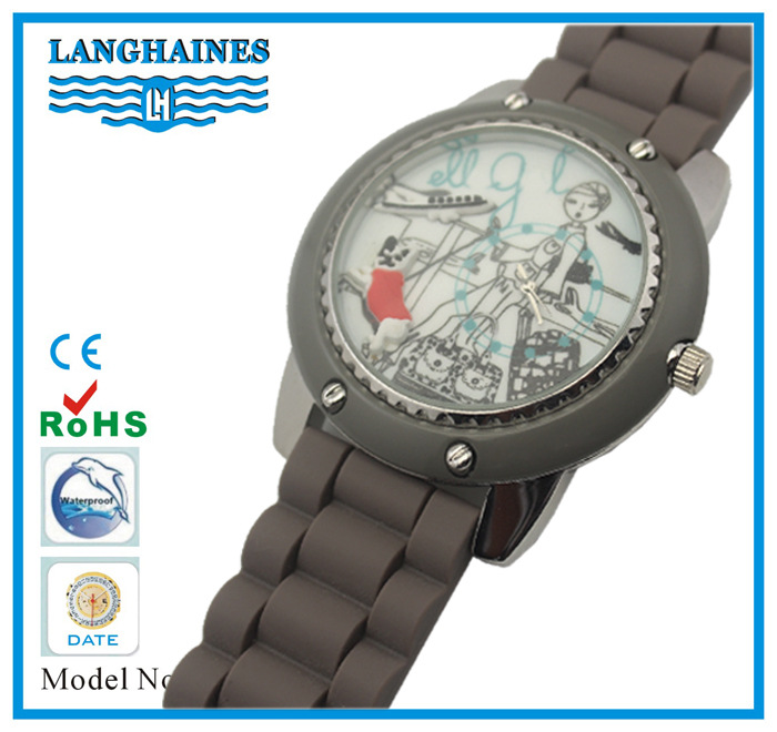 表带:硅胶(可用真皮/合金/PU皮/PVC/塑胶/铜/钨钢/陶瓷/钛/玉/木等,具体按客户要求生产),可压制LOGO