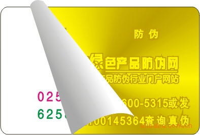 激光防伪又名镭射防伪,或称激光全息防伪。激光防伪技术包括激光全息图像防伪、加密激光全息图象防伪和激光光刻防伪技术三方面。此类标签价格低,防伪效果佳,可在标签表面制作企业信息、LOGO、商标,也可制作人物头像或其他特殊图案、线条等。激光防伪标签适用于各个行业各类产品,如数码,医药,化妆品等。
