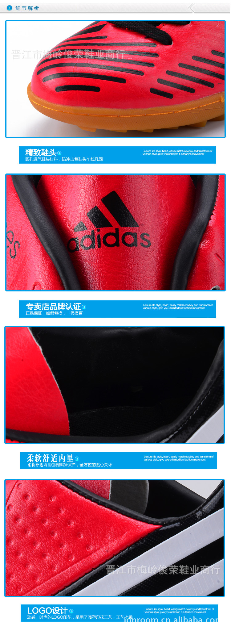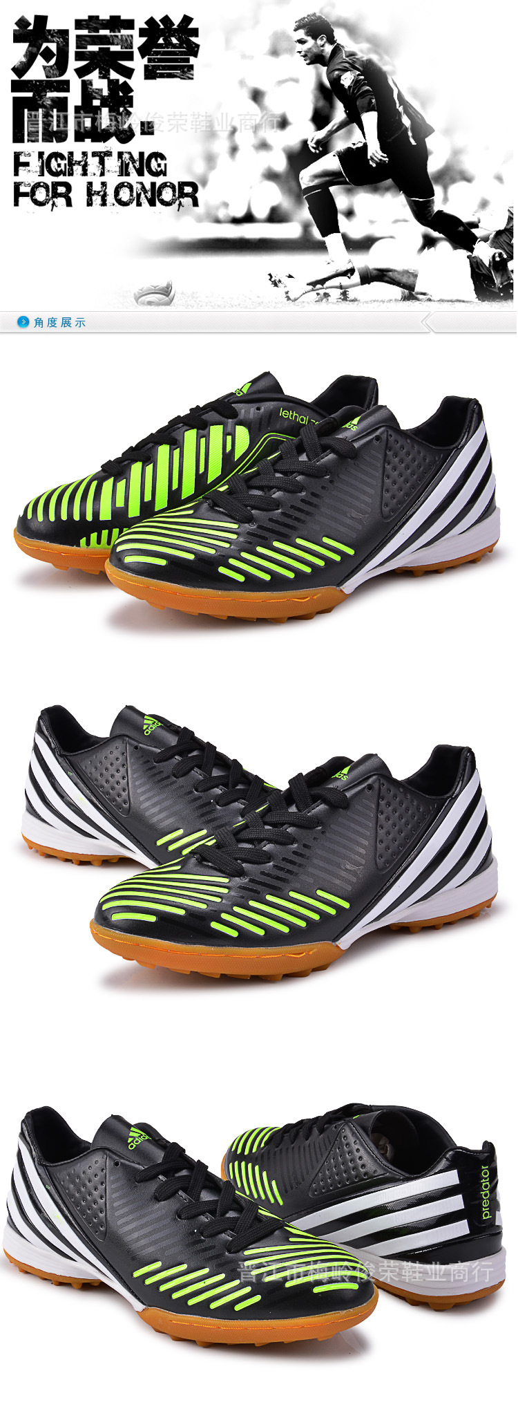 本公司专业经营足球鞋、训练鞋、儿童足球鞋、运动鞋等业务。如有需要的亲们,可以联系我们,我们的口号是:您的满意,我的追求。联系方式:手机:18650671119(潘先生)。qq“187 4008 388 。邮箱b2c998@。