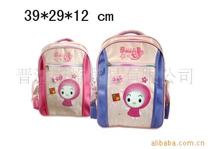 【特色】本款书包抓住学生的年龄特点,卡通图案和周围的饰物、文字等都力求设计的可爱,用以吸引学生的眼球。款式新颖独特,活泼、可爱。