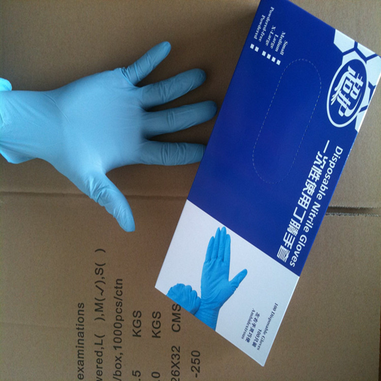 一次性蓝色丁晴手套,耐酸碱丁晴手套,9寸无粉蓝色丁晴手套工厂