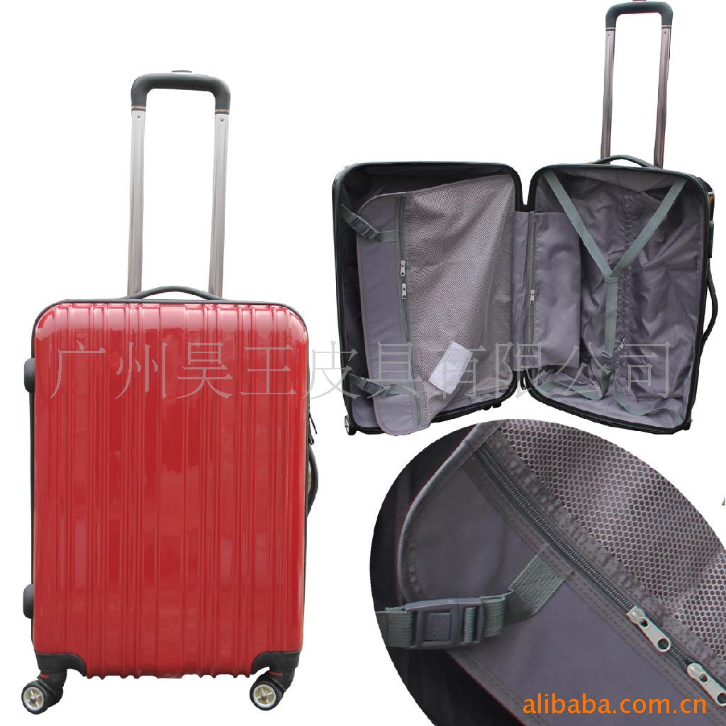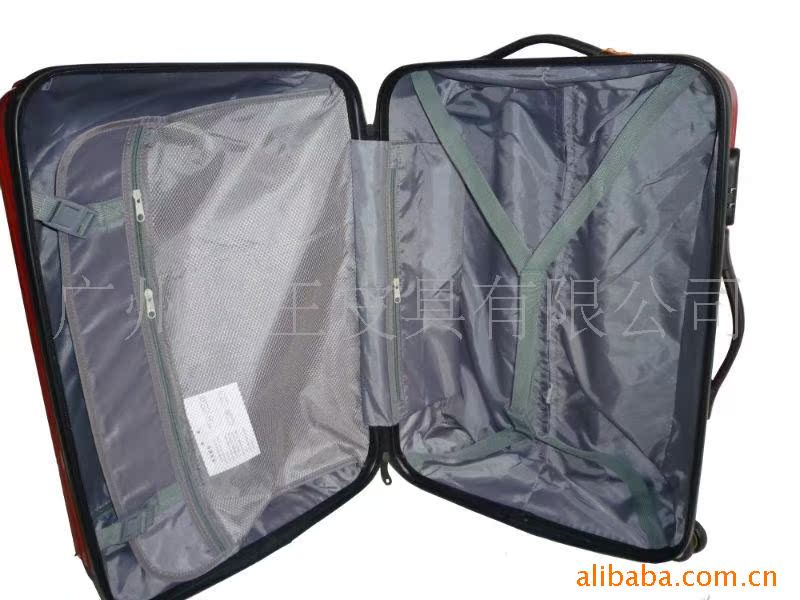 2、产品介绍:PC拉杆箱,拉杆为高级铝合金拉杆,拉杆轮轴承材质为PP360度万向轮,结实耐用耐磨损。此箱为拉链设置,第一层拉链内有拉链式网袋,独立挂衣环及松紧带,可放置衬衫等随身物品,第二层拉链为主箱体,内有放置衣物的弹性织带,拉链式网袋。内衬为210D加密里布。配有装饰金属LOGO的拉链头及密码锁。方便管理随身物品。可随机携带。