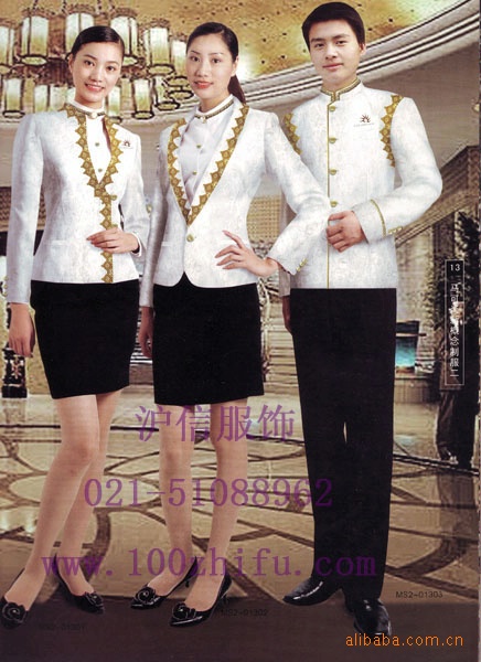 我公司设计生产各种酒店工作服包括:前厅制服,餐饮制服,厨师服,客房制服,保洁服,款式新颖、面料可选,我们有专业的客服人员上门免费咨询服务和专业的设计师队伍提供个性化设计,工厂生产力强、交货及时,如有需要还可量身定做,确保所有员工款式全体,全面售后服务,解决产品后顾之忧。