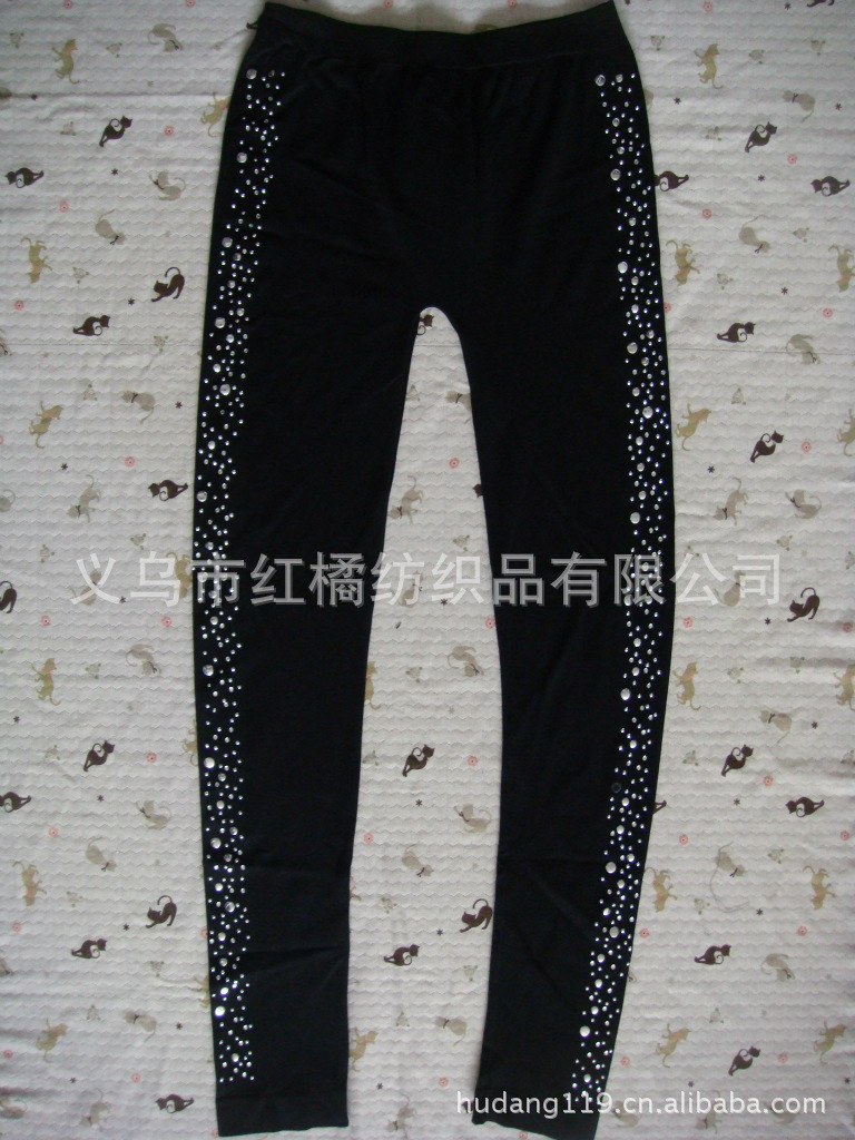 产品名称 | 女士无缝打底裤 黑色烫钻九分裤 尼龙单裤 烫珠片打底裤 |
