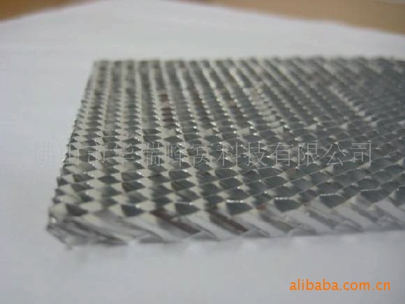 我公司拥有多位研究蜂窝结构材料的专家和专业蜂窝机械生产人员。为满足客户多样化需求以及建材行业发展的需求,公司立足于“技术新、品质高、产量大、服务优”之理念,致力于铝蜂窝结构材料的研究和推广,并研发和制造了先进的铝蜂窝芯生产线,铝蜂窝复合板全自动生产线等一系列蜂窝生产设备,研发和生产大量铝蜂窝芯(铝蜂窝网),特别是孔格边长a=0.6 0.8、1.0、1.5、1.83等规格的微孔铝蜂窝在国内处于领先水平。公司生产的铝蜂窝芯选用优质的 3003/5052 型铝箔,厚度为0.02mm~0.12mm,边长为0.6~12mm,经过高强度粘和剂加工而成,还可根椐客户需要订做多种规格。