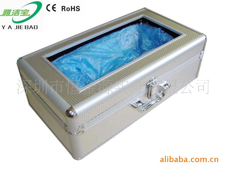 雅洁宝牌自动鞋套机是恒金源公司自主研发、设计、生产的主导产品,外型时尚、用料考究、整体性高、出套率稳定的一线品牌鞋套机。具有以下特点:一、全新的设计理念:外型时尚精致。二、材质:外壳采用ABS全新料注塑、喷涂,机芯采用不锈钢和彩钢,经久耐用。三、出套率:使用齿轮转动,出套率100%。四、容量大:每次可装套60只。五、操作简便:装鞋套不需工具,非常方便。六、通用性:不管多大的鞋,或是高跟鞋都可以把整个鞋包住。