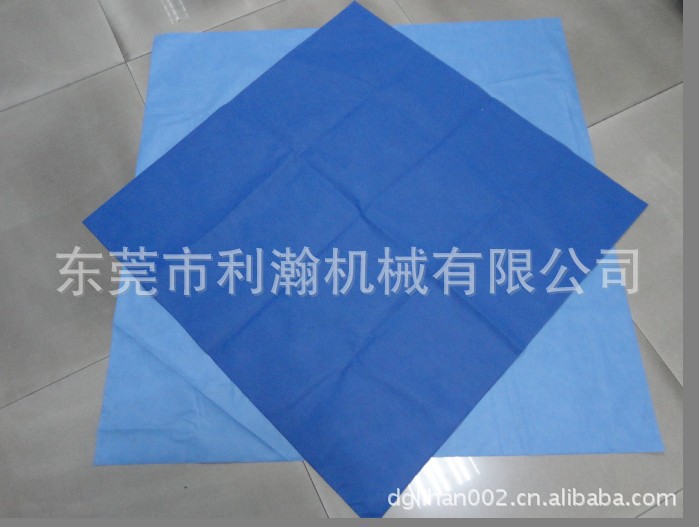 1.把大盘无纺布或类似材料复卷、单层、多层,再由超声波切割或冲口