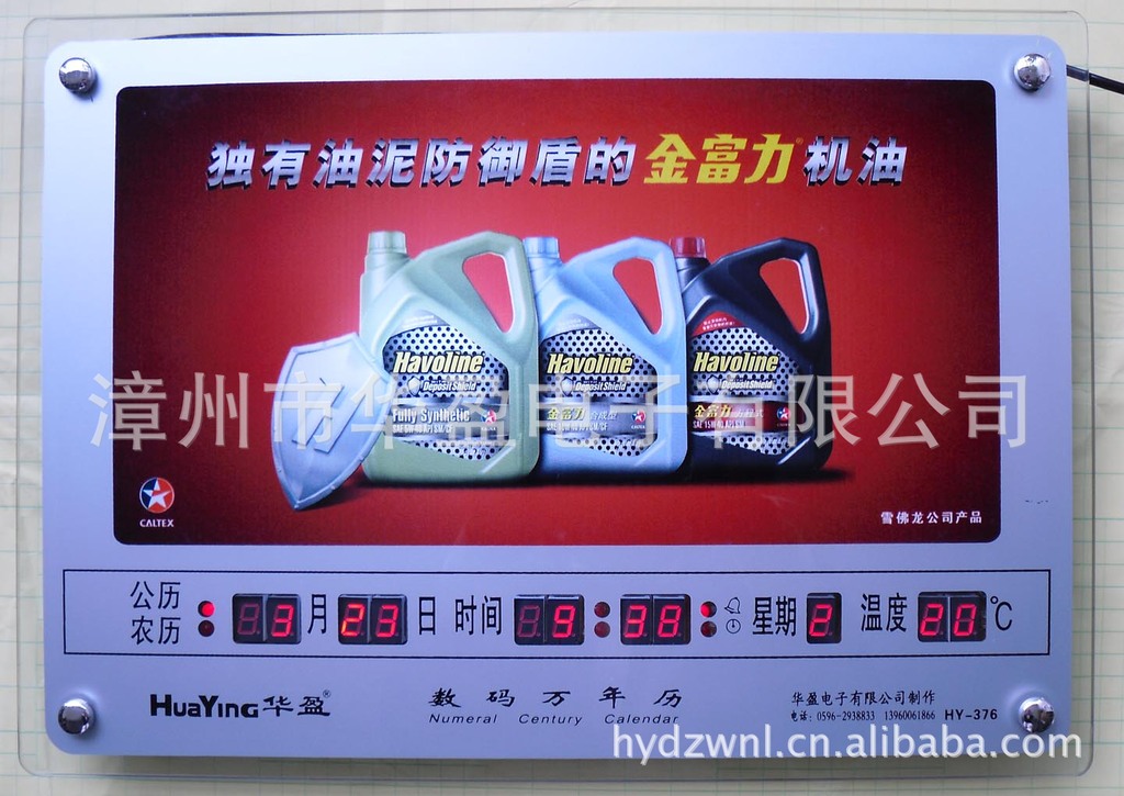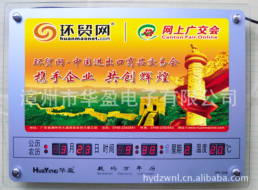 泱泱中华,礼仪之邦。从古至今,互赠礼品,礼尚往来就是社会生活所不可缺少的重要环节,礼品也就成了人们日常生活中的必需品,随着市场经济的飞速发展,礼品更是成为了广告和商务往来的必备之品。挂历信息量小,只能单调的显示(公历/农历/星期)和枯燥无味的图片;今天数码广告万年历已经成为市场的趋势,它取代了传统的挂历,具有多方面的优点:1、广告效果好,它内置灯箱,能突出显示公司的形象、产品广告。2、辐射范围广泛,它适用于办公、家居、活动场所的摆设;让人们在看时间的同时就能看到您的广告。