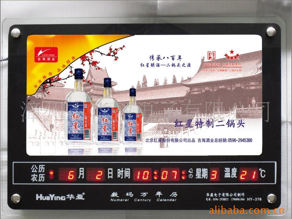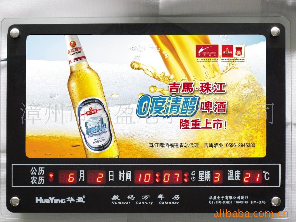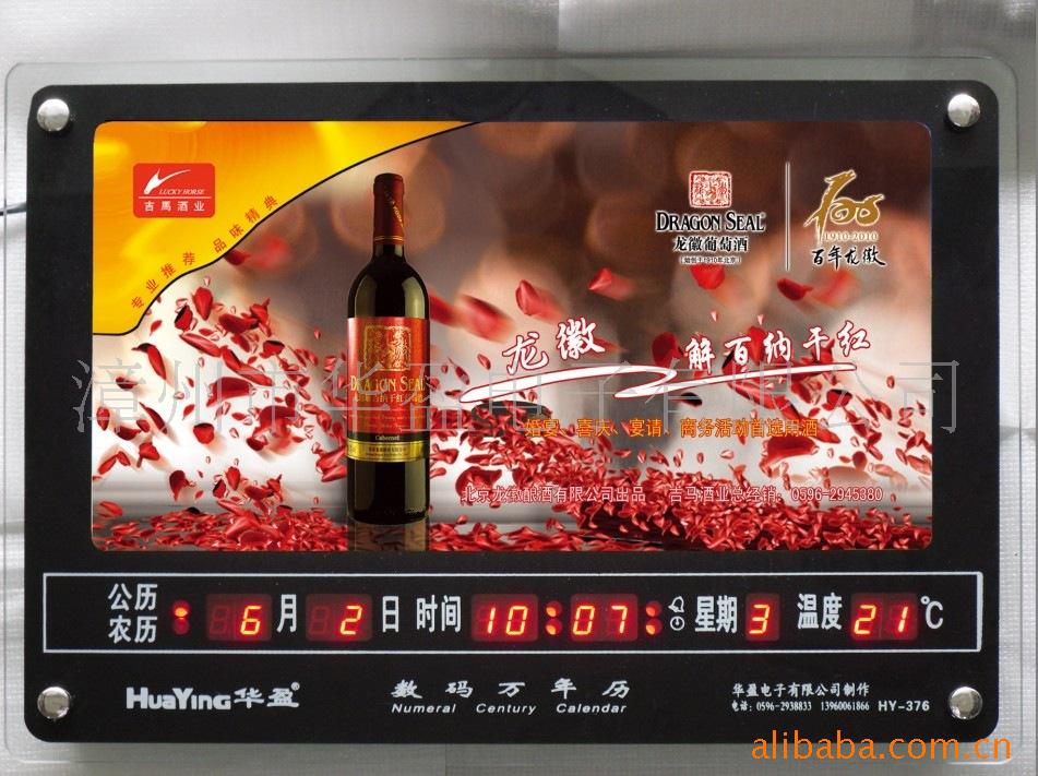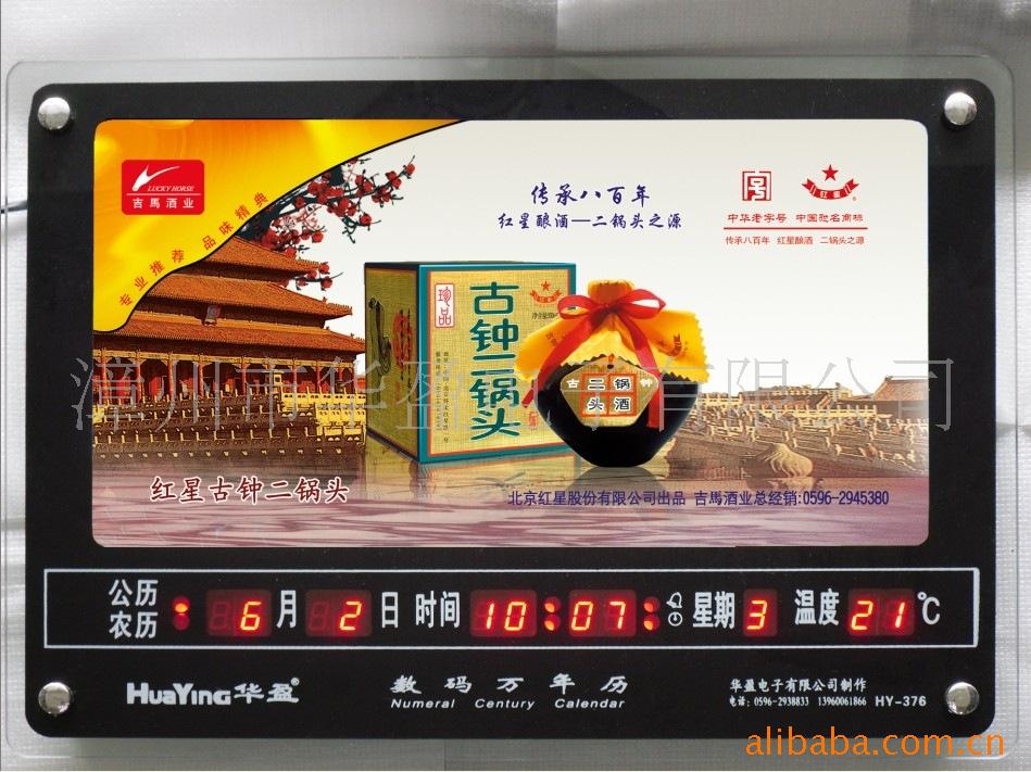 泱泱中华,礼仪之邦。从古至今,互赠礼品,礼尚往来就是社会生活所不可缺少的重要环节,礼品也就成了人们日常生活中的必需品,随着市场经济的飞速发展,礼品更是成为了广告和商务往来的必备之品。挂历信息量小,只能单调的显示(公历/农历/星期)和枯燥无味的图片;今天数码广告万年历已经成为市场的趋势,它取代了传统的挂历,具有多方面的优点:1、广告效果好,它内置灯箱,能突出显示公司的形象、产品广告。2、辐射范围广泛,它适用于办公、家居、活动场所的摆设;让人们在看时间的同时就能看到您的广告。