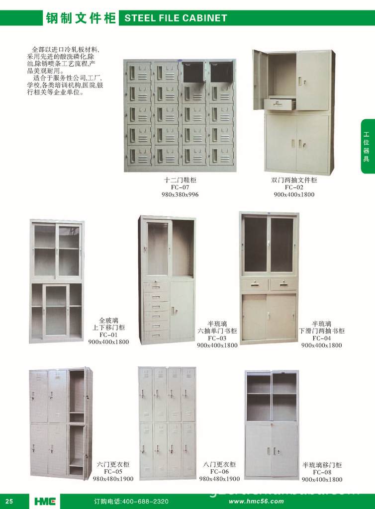 钢制更衣柜焊接部分采用高标准熔接焊,表面平整光滑。 钢制更衣柜柜门采用进口阿可苏塑粉静电喷塑,经过严格的九工位处理(热水洗、预脱脂、脱脂、冷水洗、表调、磷化等)。加强表面的保护,令其不受潮湿的环境影响。配置标签框,不锈钢拉手。通风窗,特设多位气孔,保证柜内空气流畅。豪华锁具,开、锁有标识。专利外包门设计,外观大方,增大风部使用空间。内置更衣镜,不锈钢挂衣杆。 钢制更衣柜适合各企业、宾馆、学校、游泳池、运动场、宿舍等地方的更衣室或储物室。