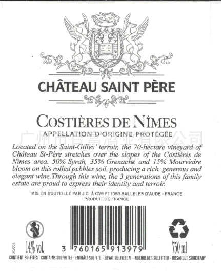 位于圣-吉尔的土地上, chateau Saint-Pere葡萄园面积达70公顷,在尼姆地区的山坡伸延。这个家族的三代成员非常自豪地通过这款酒向世人展现他们的个性和土壤特色。希拉,歌海娜和慕合怀特的葡萄在鹅卵石土壤上开花,生产出丰富饱满优雅的酒。由于这个特点,葡萄园一整年都有稳定平缓的水源。处于地中海气候,全年享受到阳光,非常有利于葡萄的成熟过程。