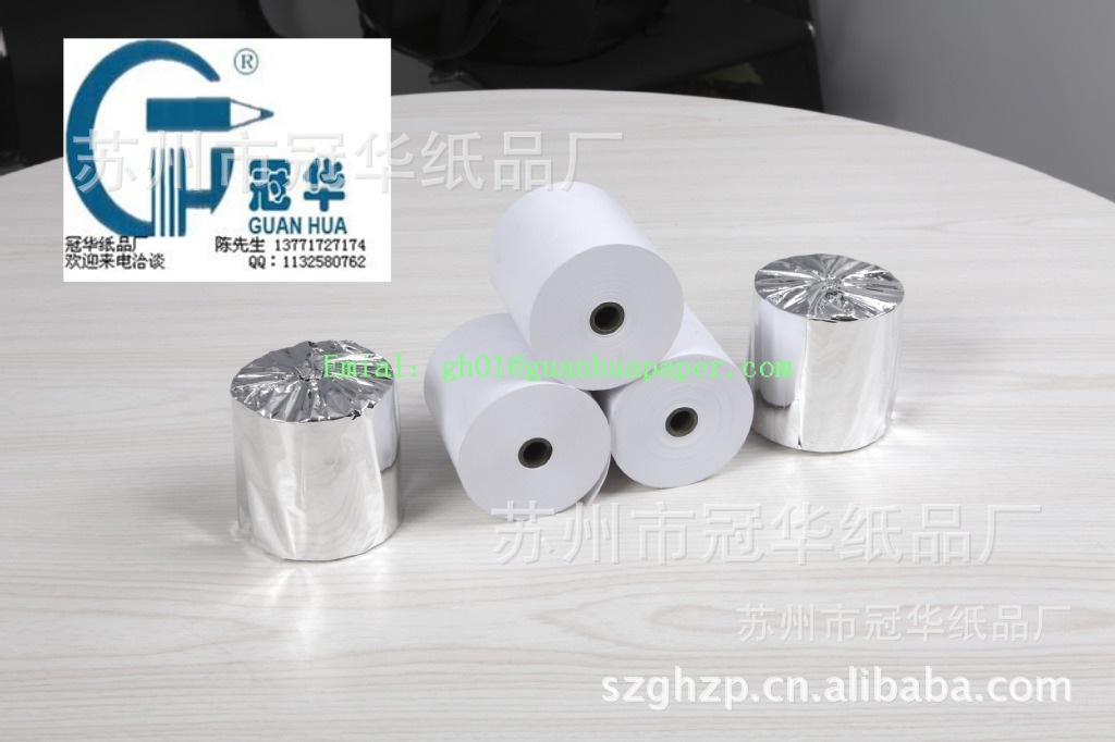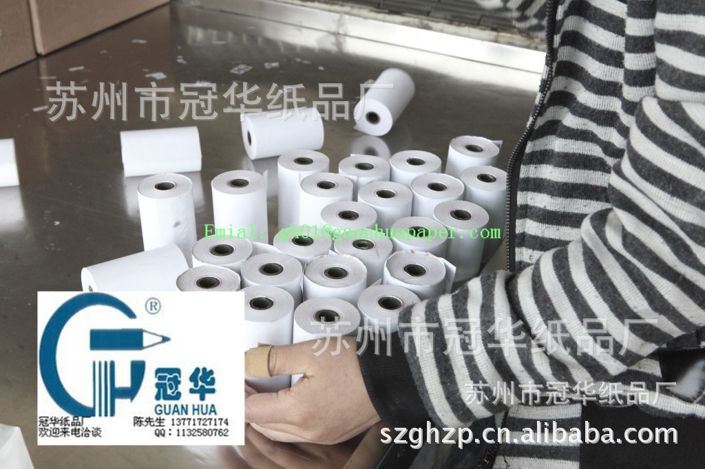 我公司推崇质量至上的原则,生产的冠华牌、A+系列纸品采用进口原纸以及国内知名厂家原纸,产品质量完全达到国际标准。主要有热敏纸、无碳纸、普通收银纸,压感收银纸,三防纸。具体有ATM柜员机卷纸、银行POS凭条、影院热敏电影票、航空登机牌、热敏行李标签、工商、税务、警务通专用热敏纸、交巡警等行政处罚单、电力水务收款单、商场收银纸、传真纸、复印纸、银行排队机纸、双层压感收银纸,三层压感收银纸,连续打印纸,超市收银纸背面广告、移动和联通对账单等。