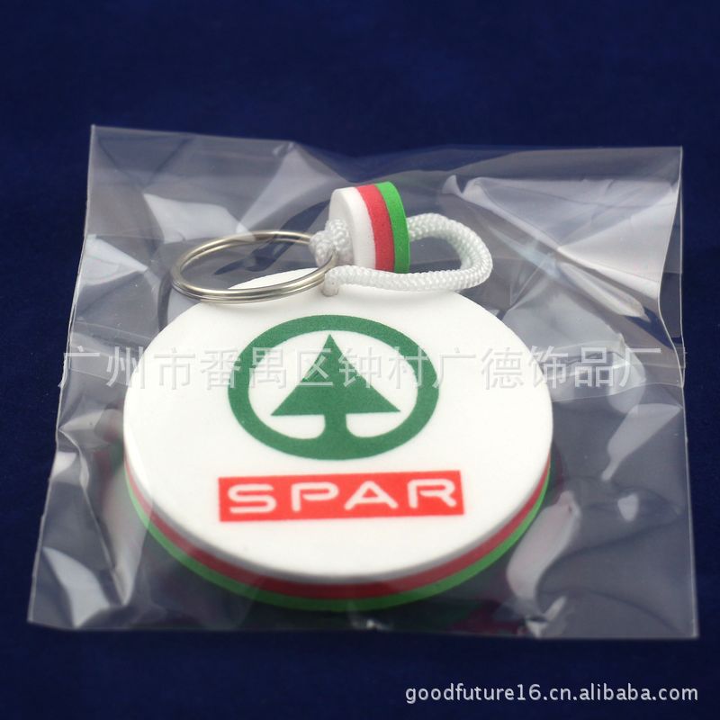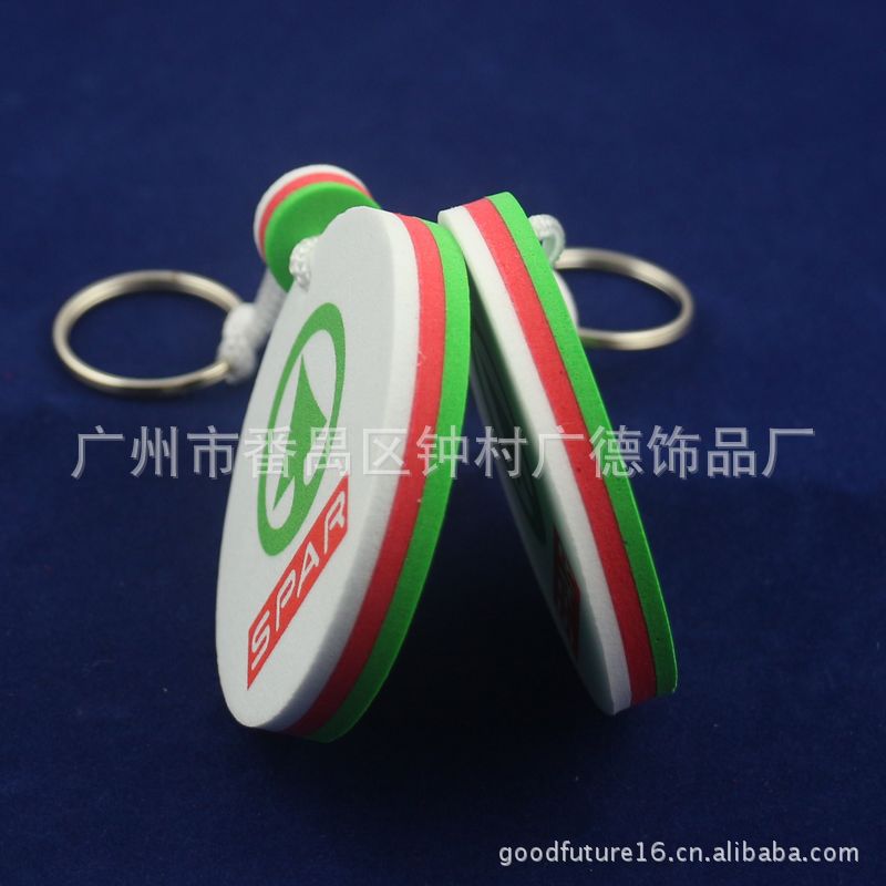 我厂大量生产EVA钥匙扣,EVA钥匙扣:主体由单层,两层或多层EVA贴合而成,并可单面或双面印刷一色或多色LOGO等作为宣传品和促销礼品,广德EVA制品有着EVA钥匙扣设计制作的多年丰富经验,可通过SGS的RoHS认证(或EN-71测试),环保、安全,无毒。广州市番禺区钟村镇生产的EVA钥匙扣具有手感好,颜色鲜艳丰富,耐磨,耐撕裂,可漂浮水面等特性,欢迎新老顾客来电来咨询,我们为您真诚服务!同时我厂也生产PVC软胶钥匙扣,产品的设计和工艺我们都可以一次完成。