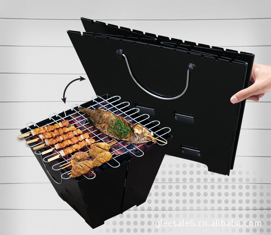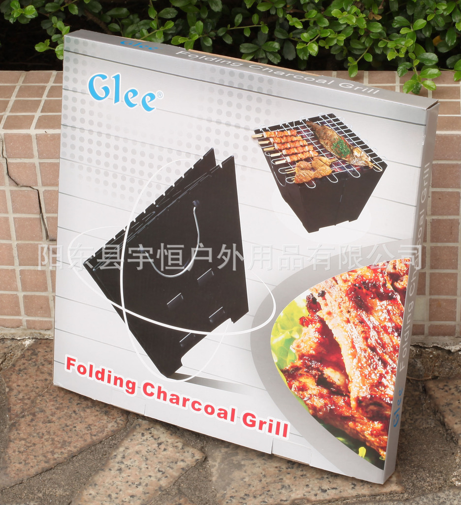 产品经过冲压、包装后,给人一种精巧、便于携带、采用优质材料制作,可折叠式设计,收缩后体积小,携带方便,结构简洁,易于清理,使用安全。采用木炭为燃烧材料,适合户外休闲烧烤。