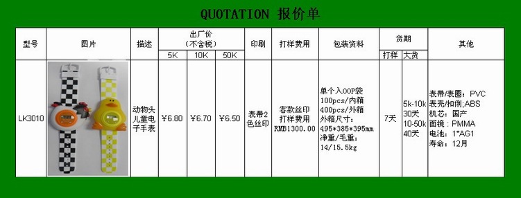 【产品材质】表壳:ABS,表带:PVC,机芯/电池:国产