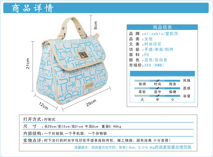 2013年厂家直销 elisablu/爱莉莎女包 欧美时尚手提单肩女包