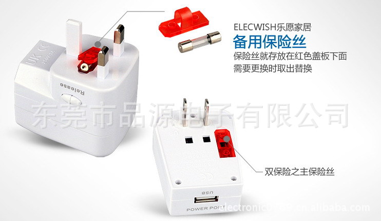 一:转换插头全面通过CE、ROHS认证,最具权威的产品认证机构SGS出具产品质量测试报告,可充电产品通过认证等 二:转换插头塑胶材质采用进口LG品牌PC工程阻燃材料,防火等级为UL94V-0级,耐压3000V 三:转换插头金属部位采用环保磷青铜材料,拔插测试超过12000次,不变形,强劲弹性,正常使用8年不松动。 四:转换插头核心配件安全保险管选用通过英国BSI、美国UL、欧洲VDE认证的陶瓷保险管 五:转换插头线路设计采用浪涌保护电路,可防止雷击,瞬时电流过大的意外情况。 六:转换插头内置高性能的智能IC充电模块,线路板稳定1A高速供电,为商务节约宝贵时间,充满电即停,能有效保证充电质量,延长电池使用寿命. 七:出厂大于8小时高温高湿老化测试,USB通过3000V高压测试,确保每件产品品质优良。