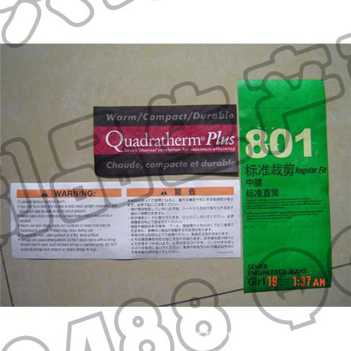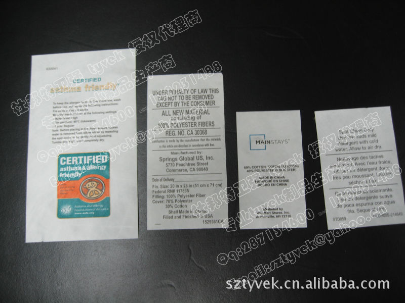 1.可缝制或粘贴,不会影响其特性2.耐用.防撕裂耐磨损,能保持标签上所印制的内容和规格数据完整清晰