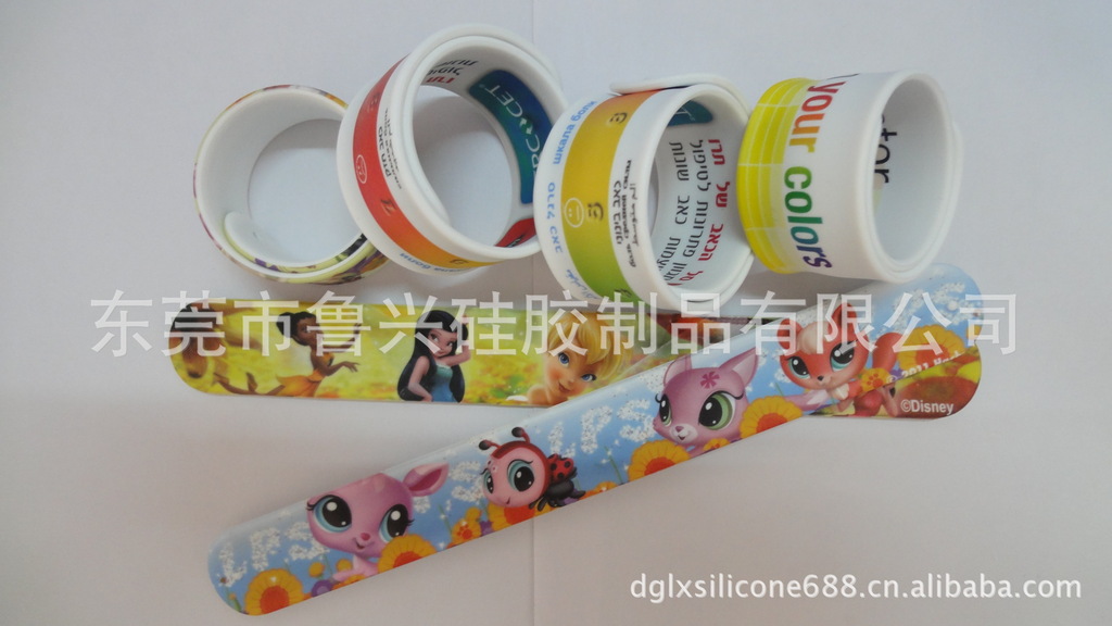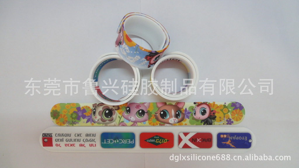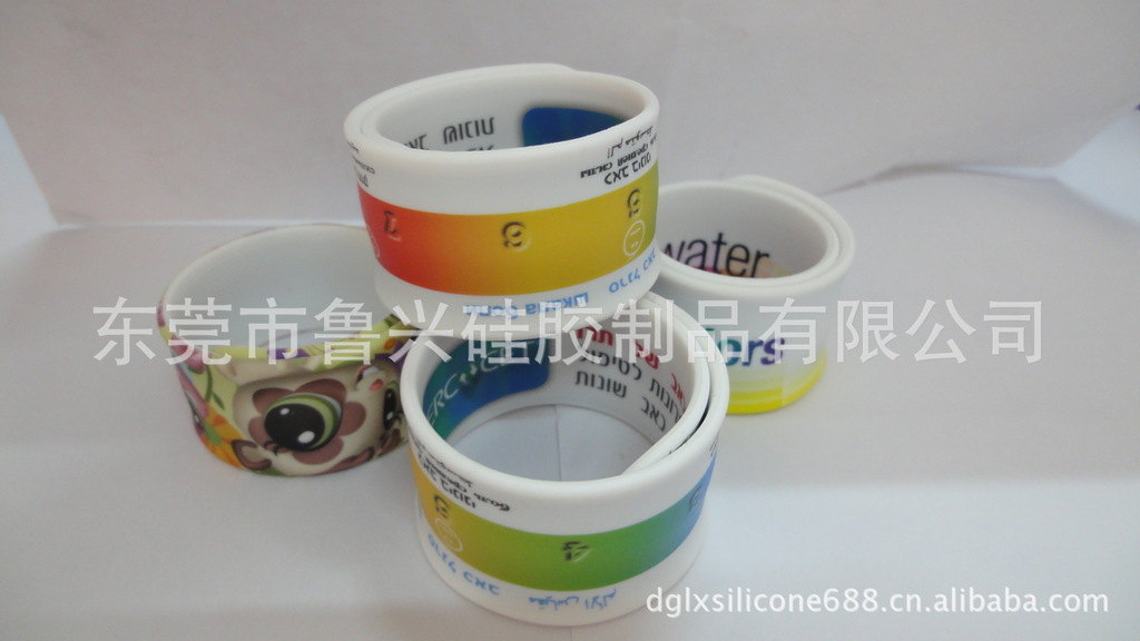 便宜的彩印硅胶拍拍手环 弹力矽胶啪啪手镯
