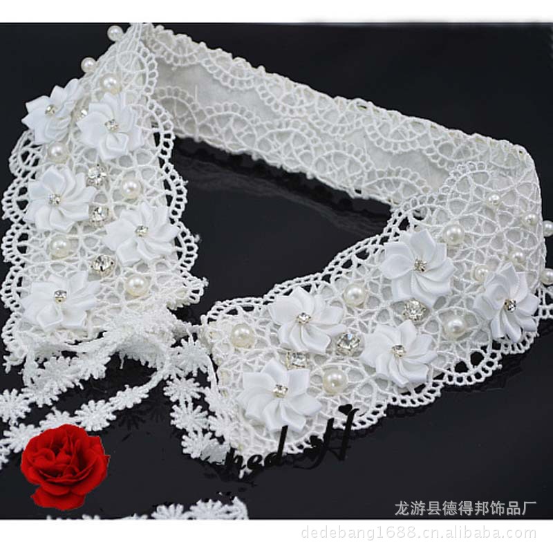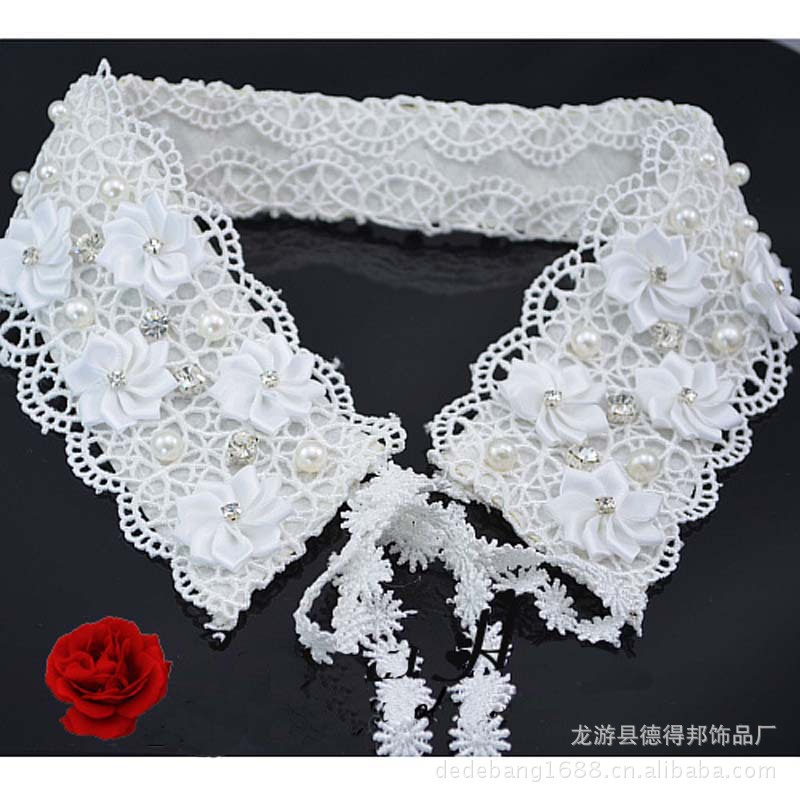 产品款号】 | P-14 | | 【产品颜色】 | 白色,黑色 | | 【产品成份】 | 棉,绒布,仿珍珠,水钻 | | 【设计亮点】 | 简洁大方 | | 【穿着季节】 | 秋、春、夏 | | 【宝贝尺寸】 | 假领内圈长度:约44cm 缎带长度:约24CM 假领最宽处:约为7CM | | 【温馨提示】 | 由于显示器和拍摄环境可能有些许的色差。 |