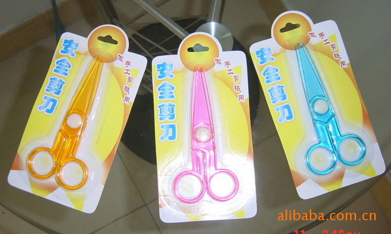 学生剪纸专用的全塑料安全剪刀:只剪纸,不伤手,广泛受到小孩子的家长喜欢,因此特别适合做学生产品类的赠品。