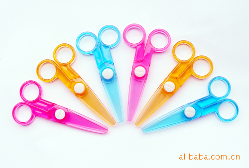 学生剪纸专用的全塑料安全剪刀:只剪纸,不伤手,广泛受到小孩子的家长喜欢,因此特别适合做学生产品类的赠品。