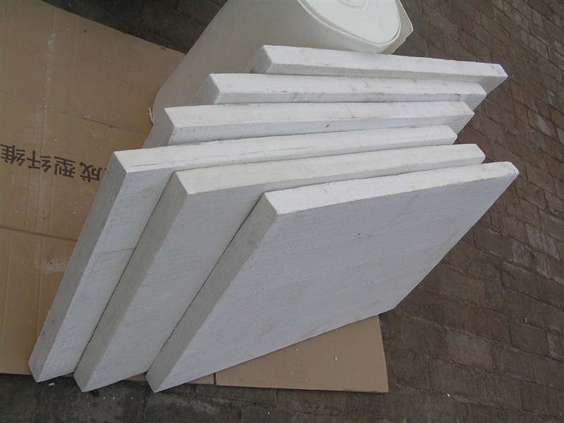 在硅酸铝棉喷吹时加入一定比例的粘结剂,形成硅酸铝毡坯通过固化室热风穿透定型后,电脑控制台自动切割成型的硅酸铝干法板。