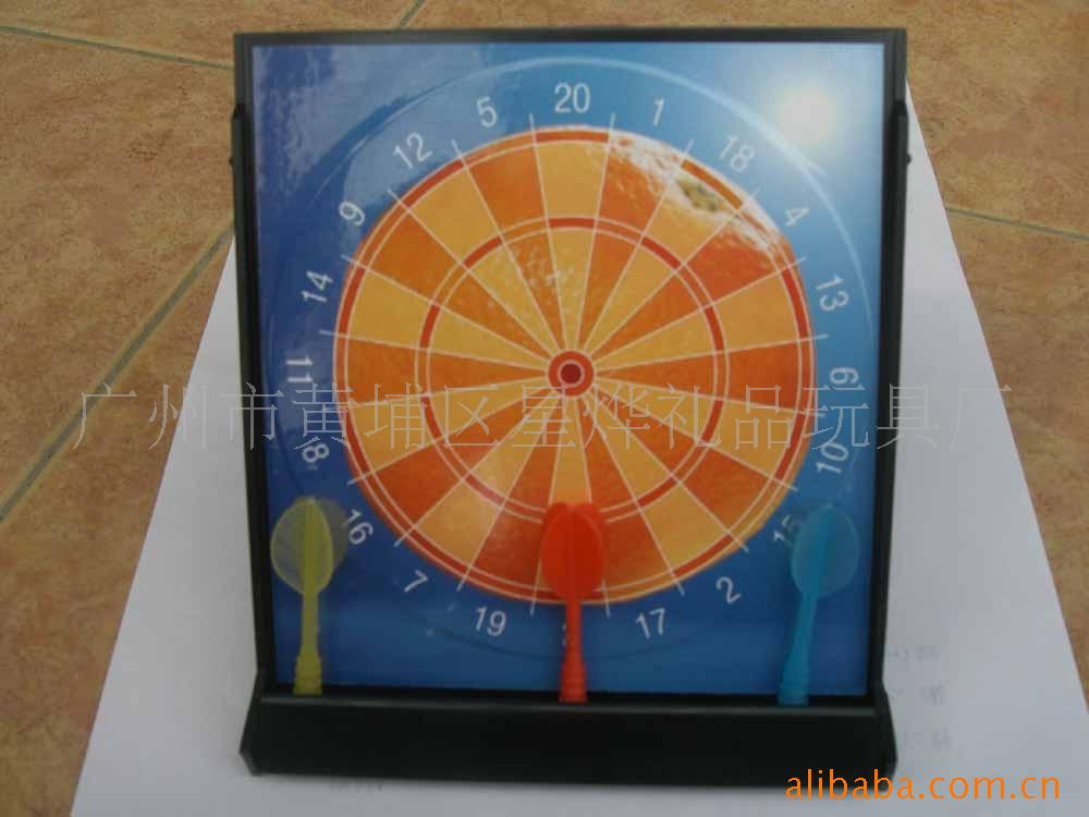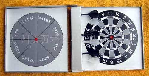 10)EVA飞镖盘:采用下面EVA+中间铁片+上面铜版纸四色印刷裱亮膜+飞镖头。