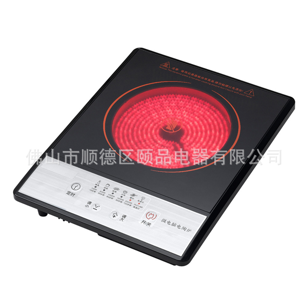 【产品参数】【产品名称】电陶炉/红外炉【产品型号】M1【产品品牌】颐品【控制方式】PET轻触按键控制【额定功率】2000W【适用电压】88-280V【面板尺寸】260X260mm【整机尺寸】280X360X65mm【档位】100W、500W、1000W、1500W、2000W 5档【定时】15分钟、30分钟、60分钟、90分钟、120分钟【炉盘】φ200mm【控温】恒温变频控制系统【彩箱尺寸】325X90X420mm【外箱尺寸】720X340X410mm【执行标准】GB4706.1-2005 GB4706.29-2008【产品性能】1、无幅射,不挑锅2、进口A级微晶面板,耐高温、耐冲击3、PET控制轻触按键界面,指示灯显示4、耐高温阻燃防火外壳,豪华烤漆工艺5、120分钟定时设定6、保温、汤粥、烧烤、火锅、爆炒功能任意选择7、高温安全指示灯8、航天级镍铬合金发热丝,3秒速热,10年寿命9、微电脑智能控制,恒温600℃更安全10、无刷静音风机【电陶炉产品特点】拒绝辐射、呵护健康专利发热技术,特殊陶瓷材料,完全无辐射,不产生任何有害人体的电磁波, 真正做到健康饮食。不挑锅具,来者不拒 不挑锅具,只要是耐高温的平底锅都可任意在无磁电陶炉上使用。快速制热,高温爆炒专利聚能炉丝非等距排列,隔热更有效,采温更快、热散更少,炉面最高温可达600℃,高温爆炒,随心所欲。性能卓越、海纳百川可烧烤,能取暖,功能超值,使用寿命长,节能环保,轻松打造现代厨房。静音烹调、排除噪音创能静音电陶炉是创能电陶炉品牌的又一杰作,静音工作,内部结构自动对流散热,避免散热部件出现故障,安全耐用。