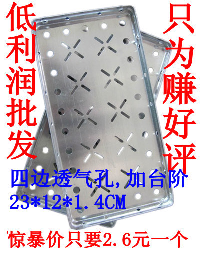 2、这款23*12*1.4cm的铝盘的透气孔全部采用圆孔形状,采用圆孔形状不破坏铝盘底部强度,不易变形,十字孔的话,不仅十字的四个花瓣容易向上翘起,还容易造成小型线路板从十字缝隙里掉出去;