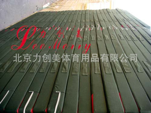 力创美品牌所供摔跤垫为优质维纶革外套,内芯有高密度压缩海绵和高密度聚乙烯两种,胶粘/套装,规格为2m*1m*6cm,标准场地为12*12m,共72块.另有配套摔跤盖单