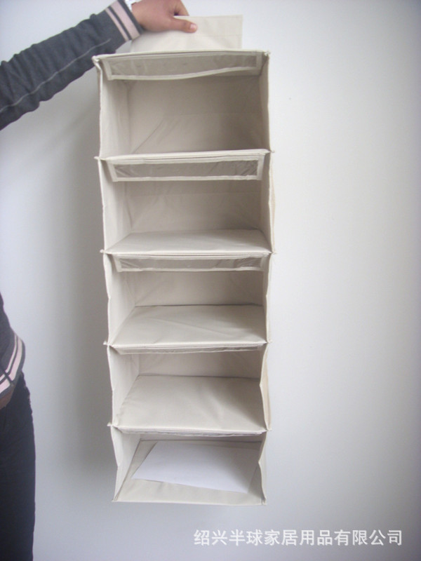 用途:此牛津布挂袋有5层,具有超强的分类整理功能,悬挂于横杆,可用于收纳各种衣物、毛毯、毛衣、小件物品等等,让家居生活井然有序,挂袋闲置不用时可折叠存放。
