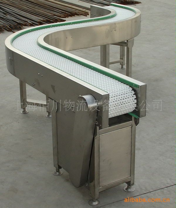链板输送机特点1、链板输送机的输送面平坦光滑,摩擦力小,物料在输送线之间的过渡平稳,可输送各类玻璃瓶、PET瓶、易拉罐等物料,也可输送各类箱包。 2、链板有不锈钢和工程塑料等材质,规格品种繁多,可根据输送物料和工艺要求选用,能满足各行各业不同的需求。 3、输送能力大,可承载较大的载荷,如用于电动车、摩托车、发电机等行业; 4、输送速度准确稳定,能保证精确的同步输送。 5、链板输送机一般都可以直接用水冲洗或直接浸泡在水中。设备清洁方便,能满足食品、饮料行业对卫生的要求。 6、设备布局灵活。可以在一条输送线上完成水平、倾斜和转弯输送。 7、设备结构简单,维护方便。 链板输送机以标准链板为承载面,由马达减速机为动力传动;我们可以通过多列链板并行,使链板输送机做的很宽并形成差速,利用多列链板的速度差使多列输送在无挤压的情况下变为单列输送,从而满足饮料贴标、灌装、清洗等设备的单列输送的要求,同样也可以使单列变成多列并行走缓慢,从而产生储存量,满足杀菌机、储瓶台、冷瓶机的大量供料的要求,我们可以将两条链板输送机的头尾部做成重叠式的混合链使得瓶(罐)体处于动态过度状态,使输送线上不滞留物料,可以满足空瓶以及实瓶压力和无压力输送。 材质:碳钢、不锈钢、热塑链,根据您的产品的需要可选取不同宽度、不同形状的链板来完成平面输送、平面转弯、提升、下降等要求。 应用:直输链板宽度由63.5、82.5、101.6、114.3、152.4、190.5、254、304.8;转弯链板宽度有82.5、114.3、152.4、190.5、304.8,广泛用于食品、罐头、药品、饮料、化妆品和洗涤用品、纸制品、调味品、乳业及等的自动输送、分配、和后道包装的连线输送。