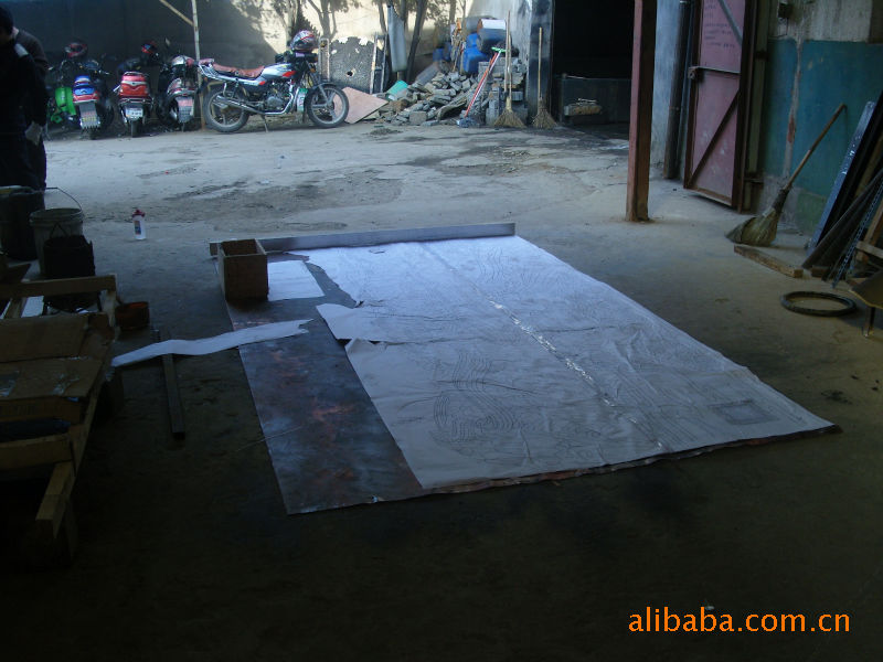 一般程序为客户选中图案,而后以1:1的大小,在所需尺寸的铜板上粘贴好。第二步再根据所贴的图纸进行构画,浮雕因为其工艺复杂,所以价格也相对的比较高。