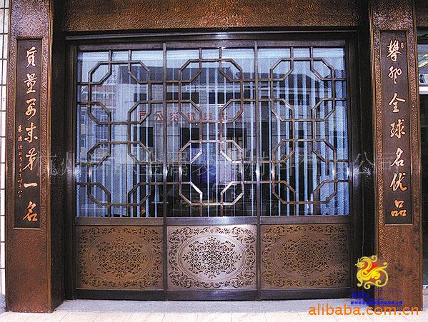 我厂铜门均采用洛阳一级铜,纯度高达99.99,精雕细刻的纹理;玻璃采用进口钢化玻璃,可做铜夹玻璃或玻璃夹铜花玻璃门;组合成多种样式的玻璃门窗.安装方便外观美观大主,主要客户群:银行,宾馆,国家政府机构....均指定由我方单位承做,详情请来电或来人咨询。