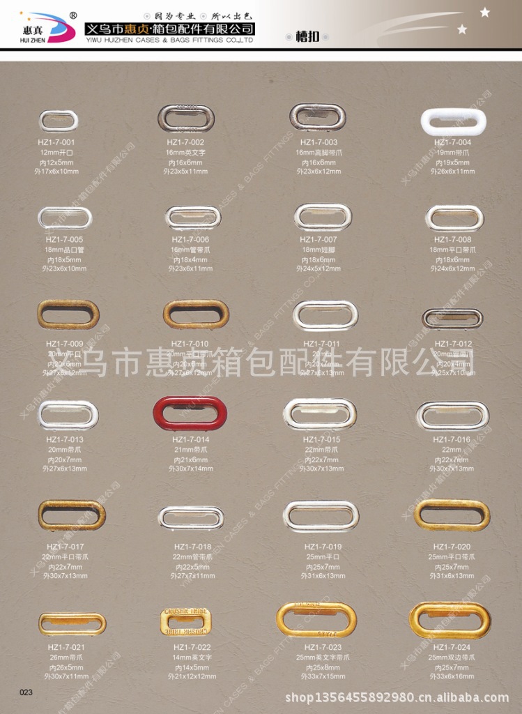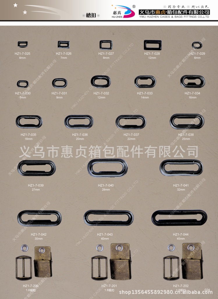 义乌市惠贞箱包配件有限公司创建于1992年,通过创业积累,创办公司于2005年,注册资金200万元。厂区座落于义西工业区月湖路5号,拥有行业内先进的生产线,冲床36套,新型压铸机3套,及抛光机、烘干机等配套设施。厂区面积近六亩,厂房及仓储、办公、职工生活区面积近8000平米,职工60余人其中专业技术人员10余人;拥有自主网站,多个阿里巴巴终端及诚信通网销平台,网络销售精英8人;国际商贸城多个经营店铺,国际商贸城三期辅料配件市场三楼三大间店面,店面营销人员近20人。公司专业生产各种裤勾、钮扣、四合扣等服装辅料、皮具箱包配件、饰品配件,压铸、冲压等多种五金产品,同时也可根据客户来样要求,自行研制模具,实现生产、销售、新产品研发、物流配送一条龙服务。带钢等原材料成批采购于江苏昆山等大型企业。