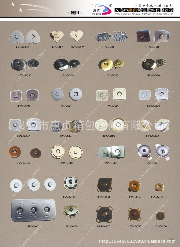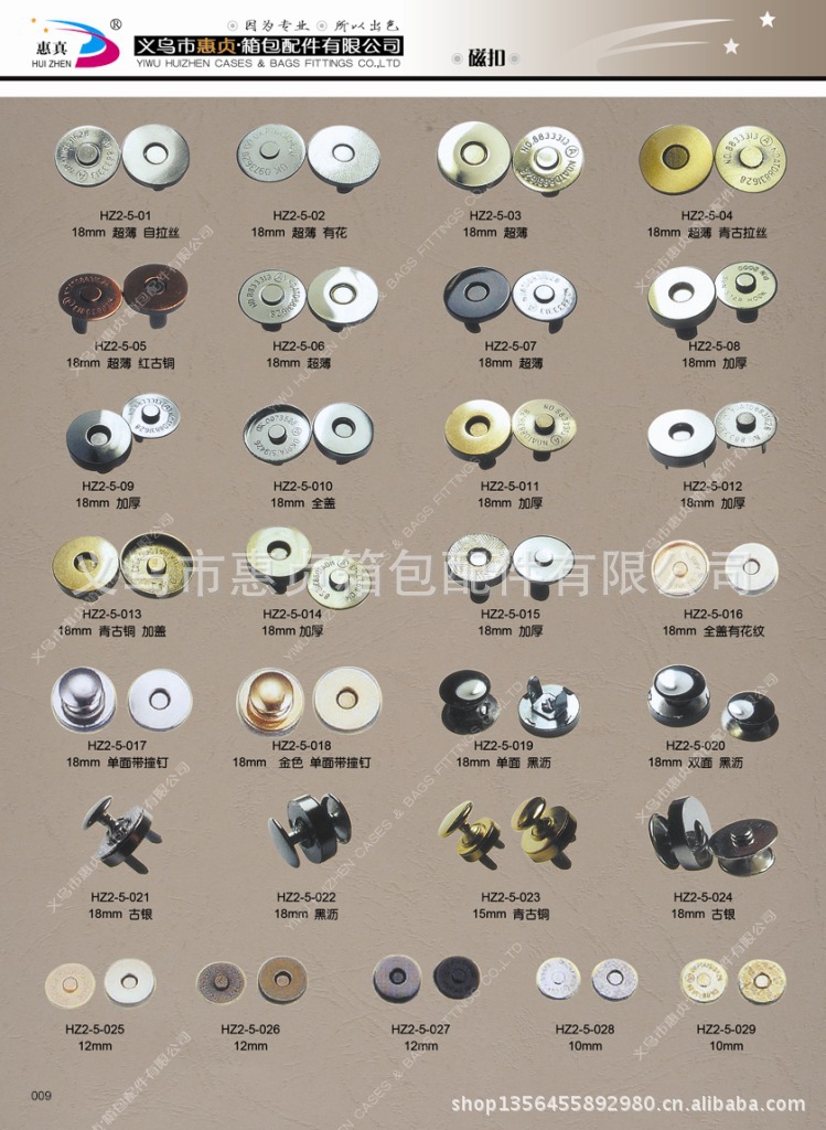 厂家直销各种规格铜铁:裤勾、活动扣、领勾、书包勾、别针、气眼、槽扣、帽扣、工字扣、牛仔钉、五爪扣、四合扣、按钮、蘑菇钉、帽钉、包扣、合金面板、珠链、模具、批花装饰扣、牛眼、鸭嘴扣、葫芦口、泡钉、磁扣、线扣、插锁、插扣、包角、爪珠等配件,价格合理、质量保证、款式众多、尺寸齐全,欢迎新老客户前来选购!