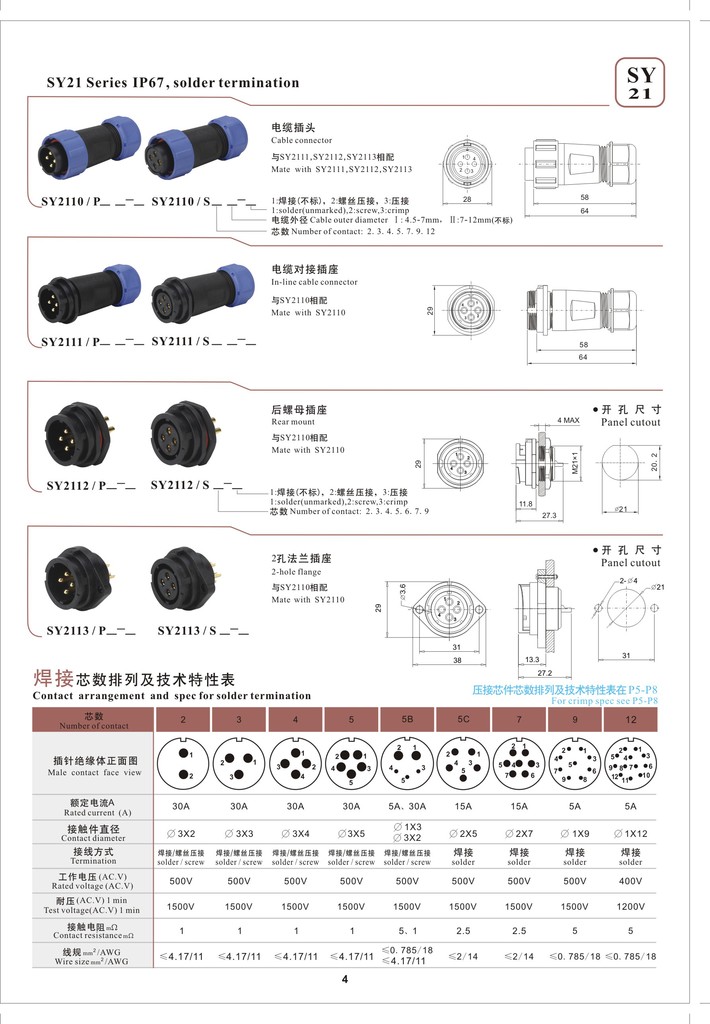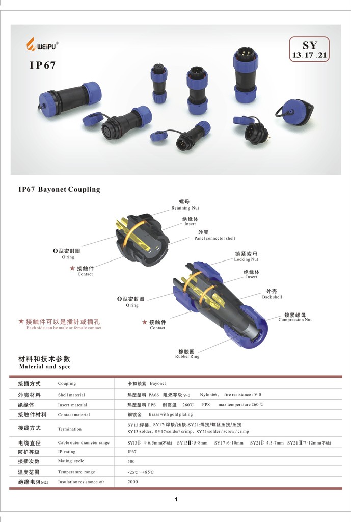 供威浦SY系列快锁IP67型电源、信号插头插座