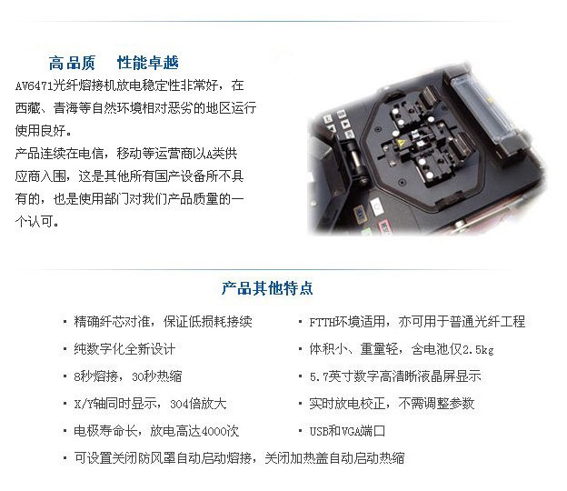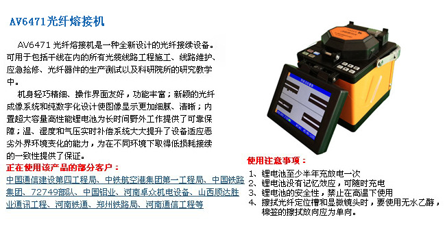 真正好的熔接机。其次,已经经过3、4年的考验的AV6471光纤熔接机,其性能的高稳定性是广大客户公认的。