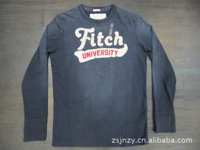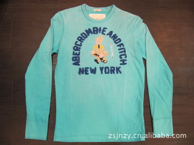厂家订单生产外贸原单全棉圆领长袖刺绣休闲男式t恤
