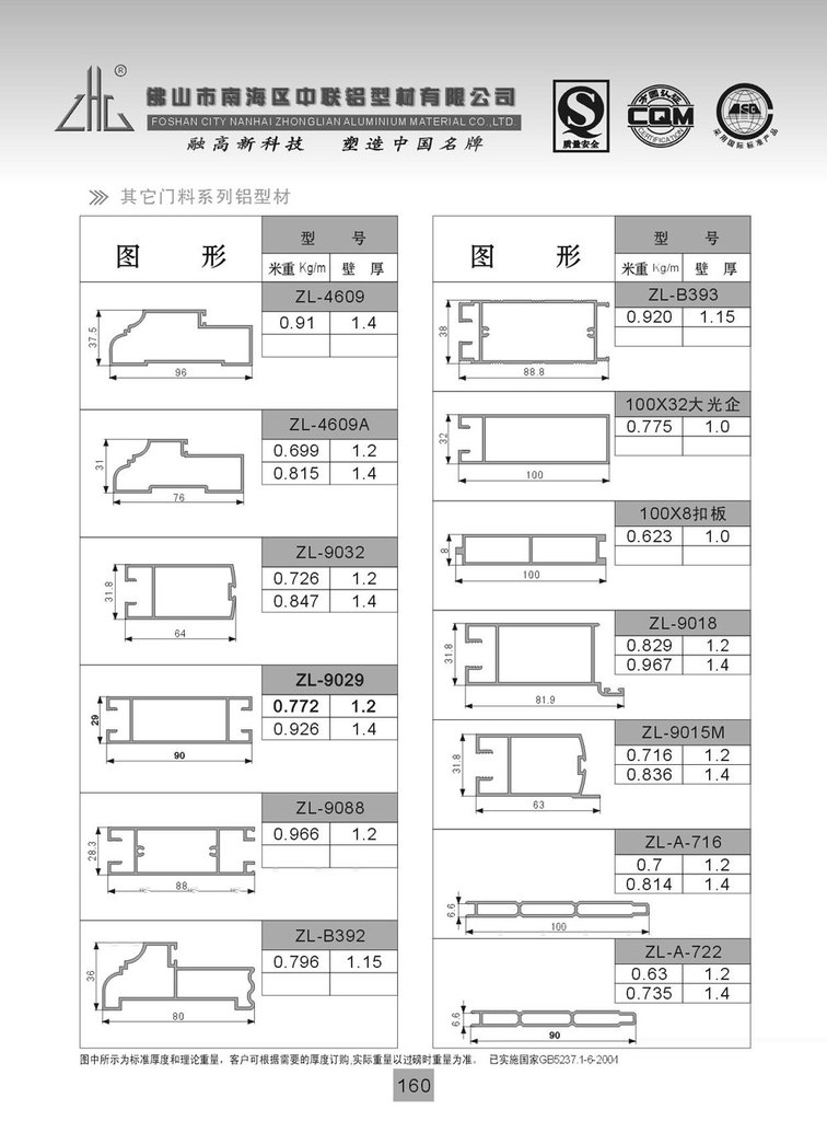 中联铝业有限公司 90系列推拉门窗铝型材 产品