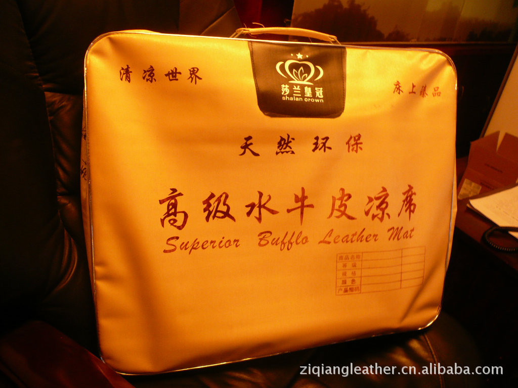 2.头层原皮:头层原皮,这种天然水牛皮具有透气、散热、吸汗、防潮之功效,且经久耐用,无虫蛀,使用年限可达数年之久,而且越用越凉爽、柔顺.