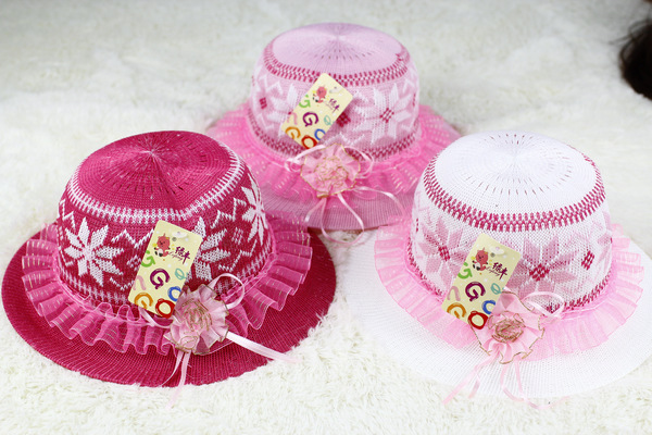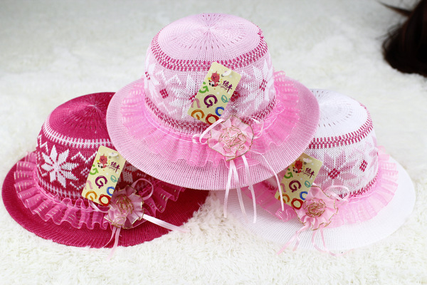 子琳商城 玫瑰花儿童草帽 儿童麻草帽 蕾丝花边儿童帽