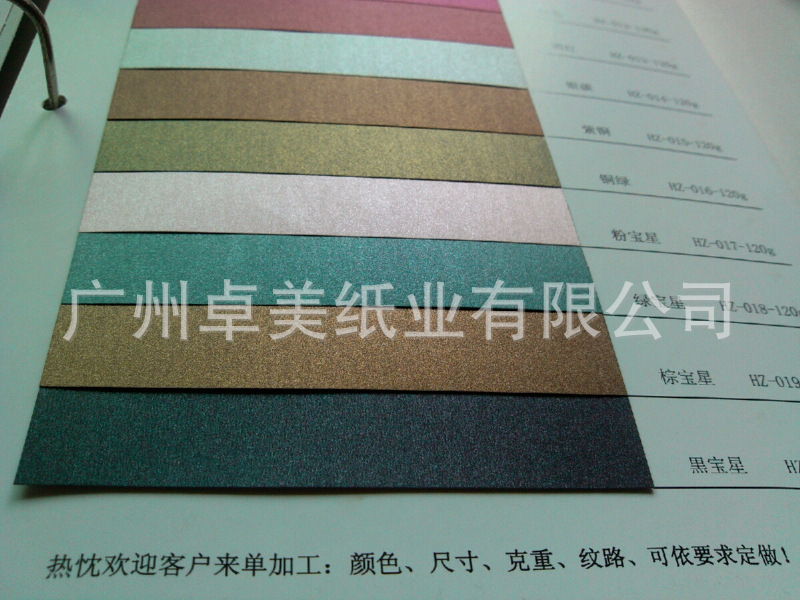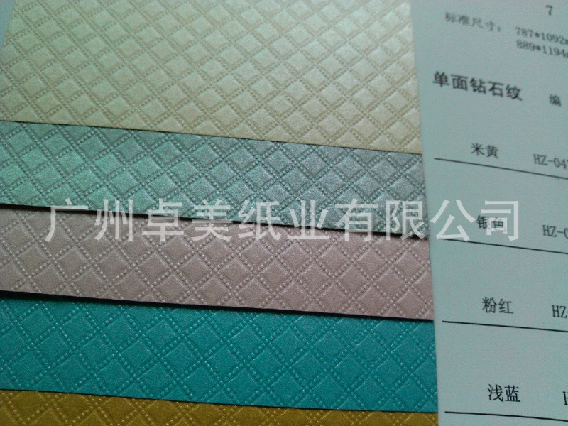 ·纹路为单面,有雅丽纹、雅丽斯、麻纺纹、雅梭纹、莱妮纹、英格纹、锦缎纹、中条纹等数十种。可以根据客户的要求定做不同颜 色、定量(克重)、纹路、尺寸。适用范围: 包装、印刷、裱盒、书册封面、工艺礼品包装等。