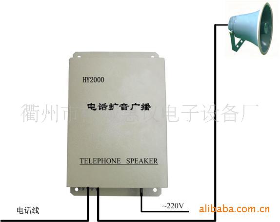 电话扩音广播是直接连接在电话线上的,电话线可以是公司内部集团电话交换机和程控交换机,也可以是电信公网的电话线。本机主要用于放大电话语音,将电话语音通过本机扬声器播放出去。便于受众者收听。机内扩音功率可达20W。也可以外接功放,使扩音范围更加广泛。