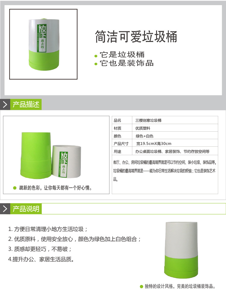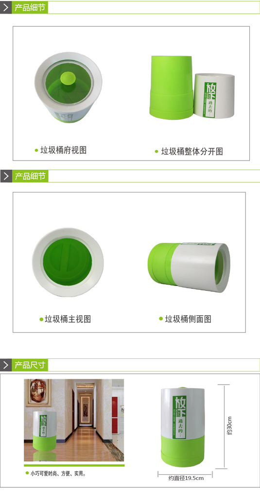 放下垃圾桶 清洁桶 艺术 双层有盖 嫩绿色小号 DS1940