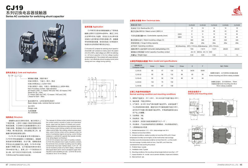 CJ19(16)切换电容接触接触器是本公司在引进国外同类技术的基础上开发和生产的新型电器元件,它广泛尖用于低压无功功率补偿屏中,取代原来由三只XD1型限流电抗器和一只CJ10接触器组成的组件也可用于一般的控制电咱中限制涌流 技术参数: 绝缘电压:500V 抑制涌流能力:20le 动作条件:吸合:(85%-110%)Us,释放:(20%-75%)Us 辅助触头控制容量:AC-15 360VA ;DC-13 33W