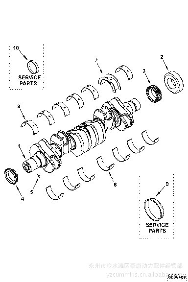 曲柄连杆机构:康明斯缸体,康明斯缸盖,康明斯连杆,康明斯连杆衬套,康明斯连杆瓦,康明斯曲轴瓦,活塞,缸套,活塞环,活塞销,飞轮总成,曲轴总成等。