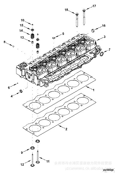 配气系统:康明斯进气门,康明斯排气门,康明斯气门座圈,气门导管,气门弹簧,气门锁片,皮带张紧轮,凸轮轴,摇臂,气门顶柱,推杆等。
