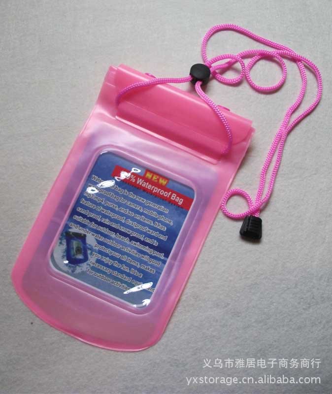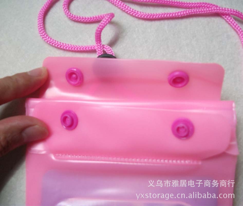 PVC防水手机袋防水防尘密封设计,稳定可靠,由PVC防寒料制作,无论南方、北方、沙漠、山川溪流、泳池海边,都能为你的数码相机提供可靠的保护,使数码相机免受风、霜、雨、雪、沙尘、浪花、湿热水汽、汗渍等的危害,你再不必担心泼水节的狂泼、海南的台风暴雨、庐山的云雾缭绕、上海梅雨青岛的潮湿、漂流的浪花、海滨浴场温泉泳池人们的打闹嬉戏、大漠奇观的环境及漫天沙尘等等旅游及驴行的好项目可能对手机的危害了。